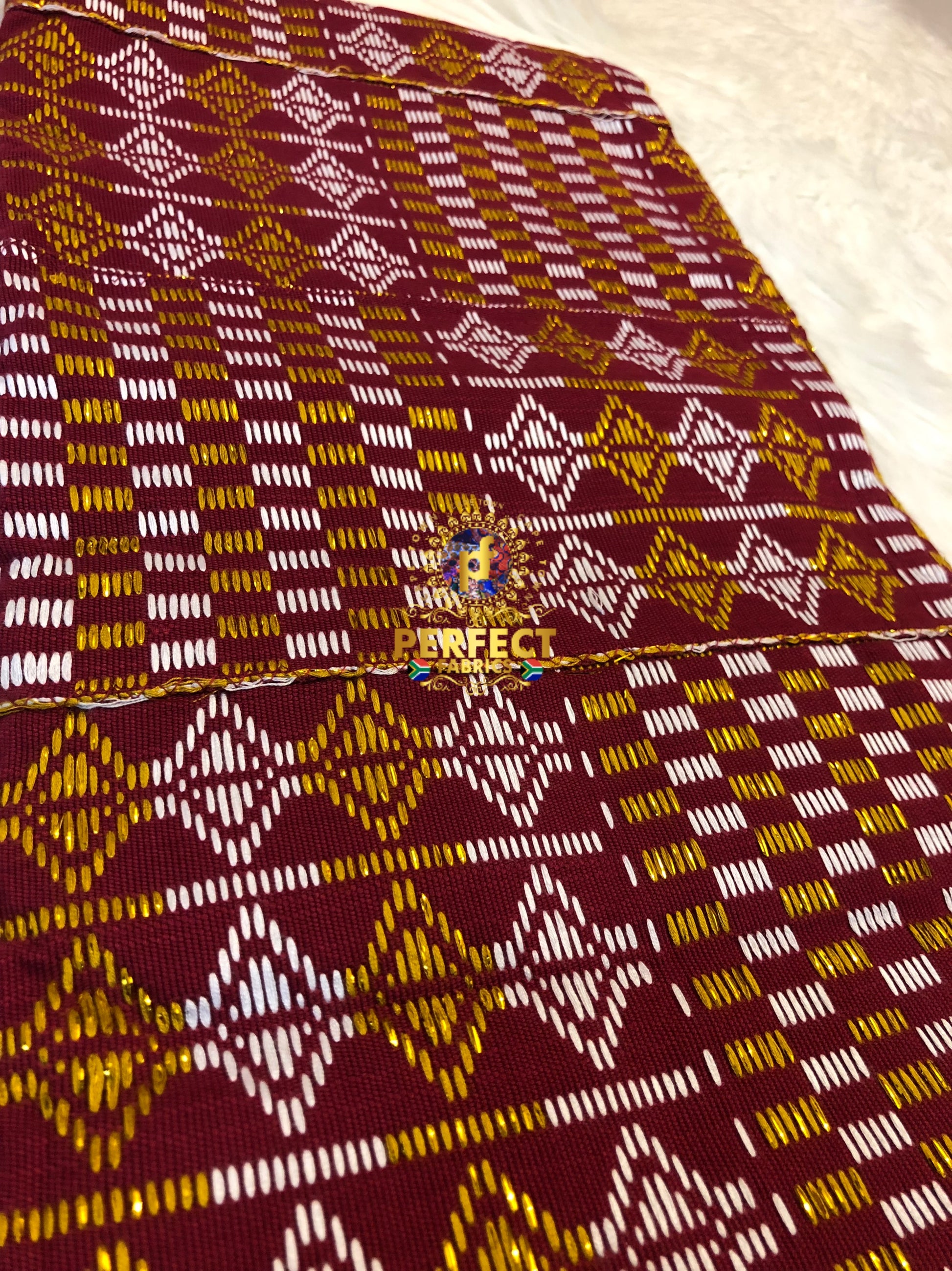 Maroon, White & Gold Ashanti Kente