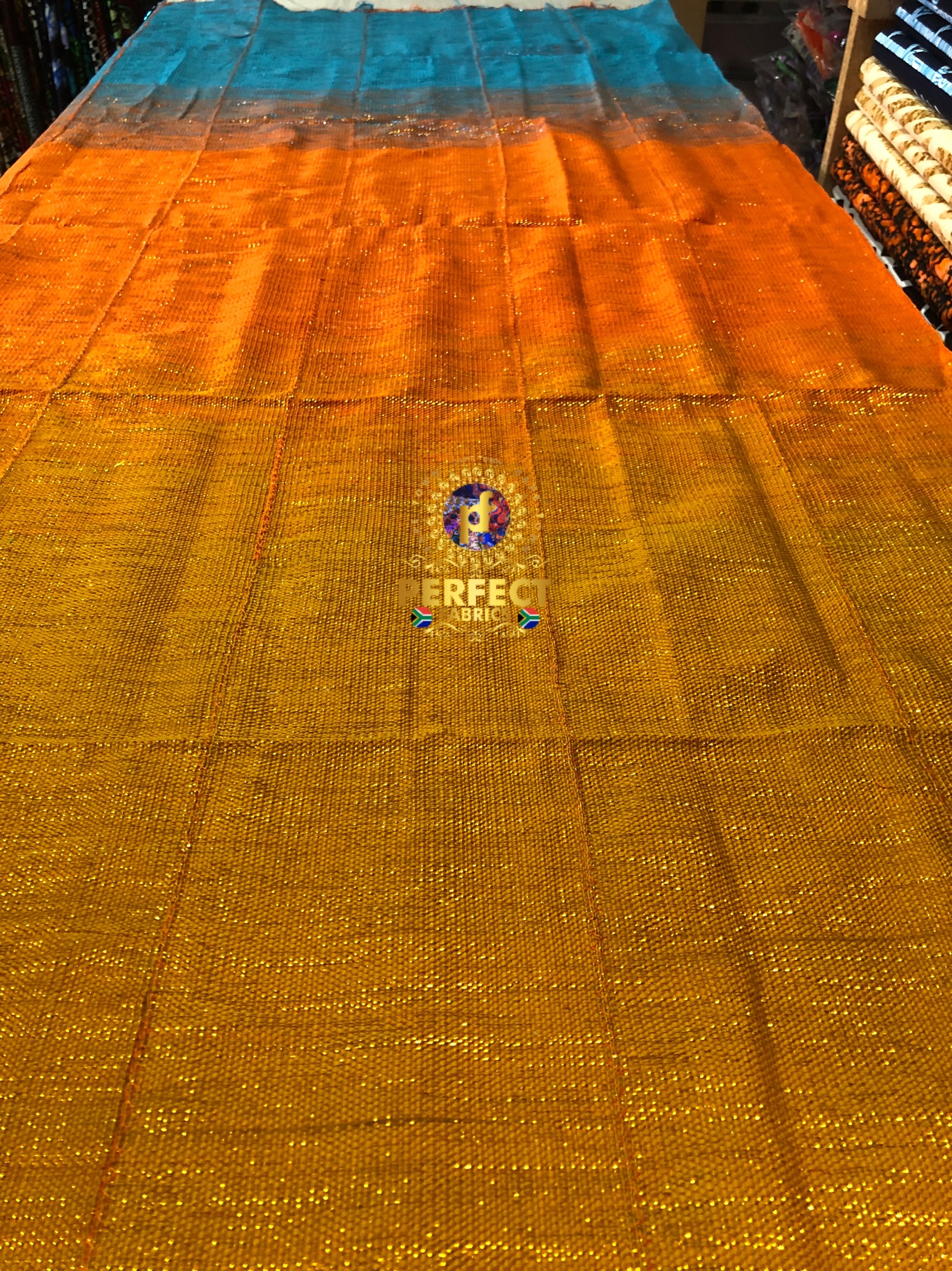 Blue,Orange & Gold Ombre Shimmery Plain Kente